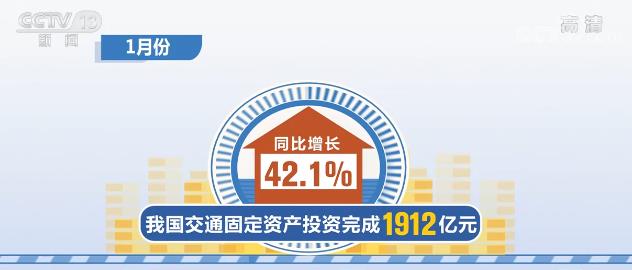 交通运输部数据显示,1月份,我国交通固定资产投资完成1912亿元,同比增长42.1%。其中,公路水路完成投资1434亿元,同比增长52.3%。