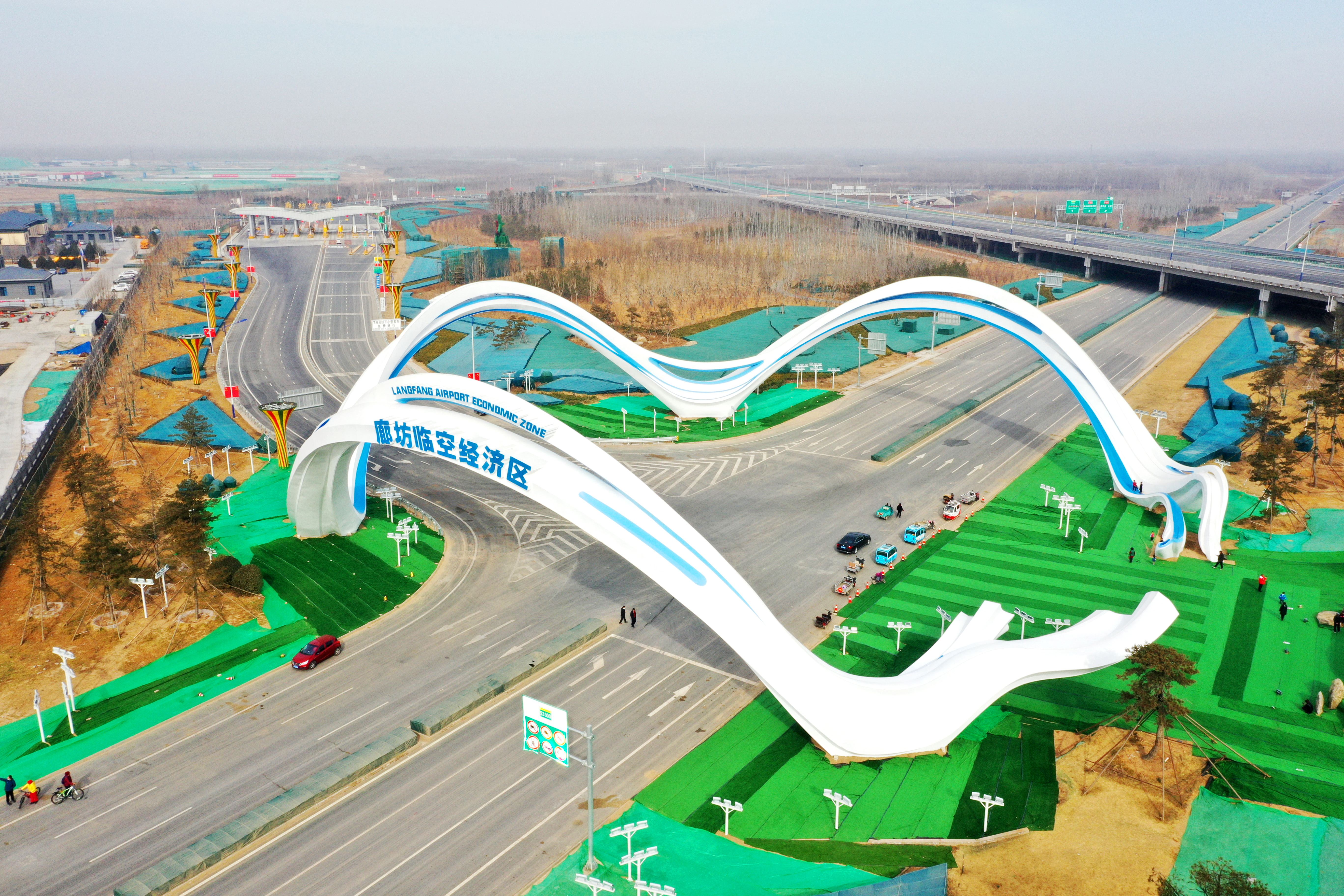 2021年2月20日拍摄的廊坊临空经济区“临空之门”。(贾珺摄)