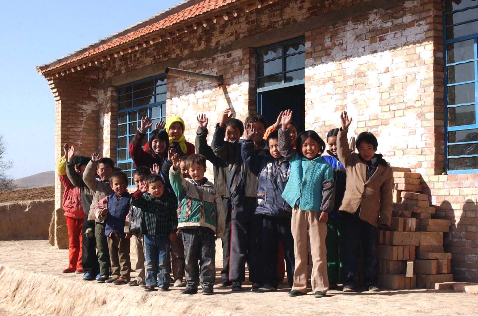 西海固一村小的代课教师和孩子们(摄于2003年)。资料照片