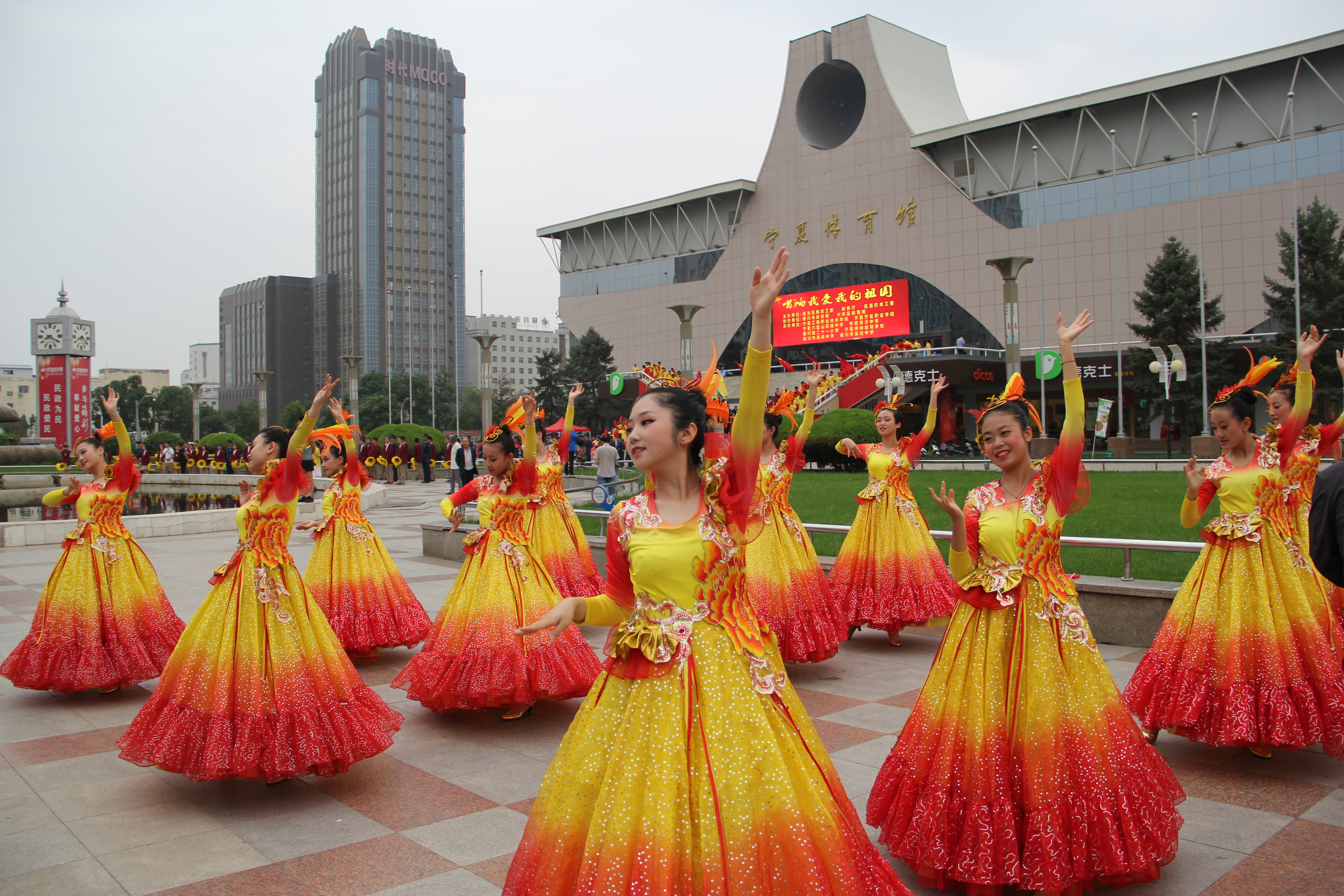 六盘山高中学生走出校园参加区内文艺演出活动。