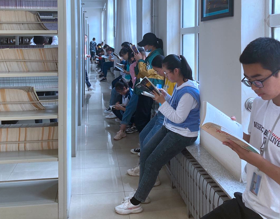 育才中学的学生周末在图书馆享受阅读时光。
