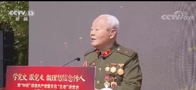 这是上海新学期开学举办的“给‘00后’讲讲共产党暨百名‘五老’讲党史”主题活动,92岁高龄的阮武昌老先生冒着寒风,坚持站立演讲近40分钟,给师生们生动讲述了当年新四军抗日的故事。