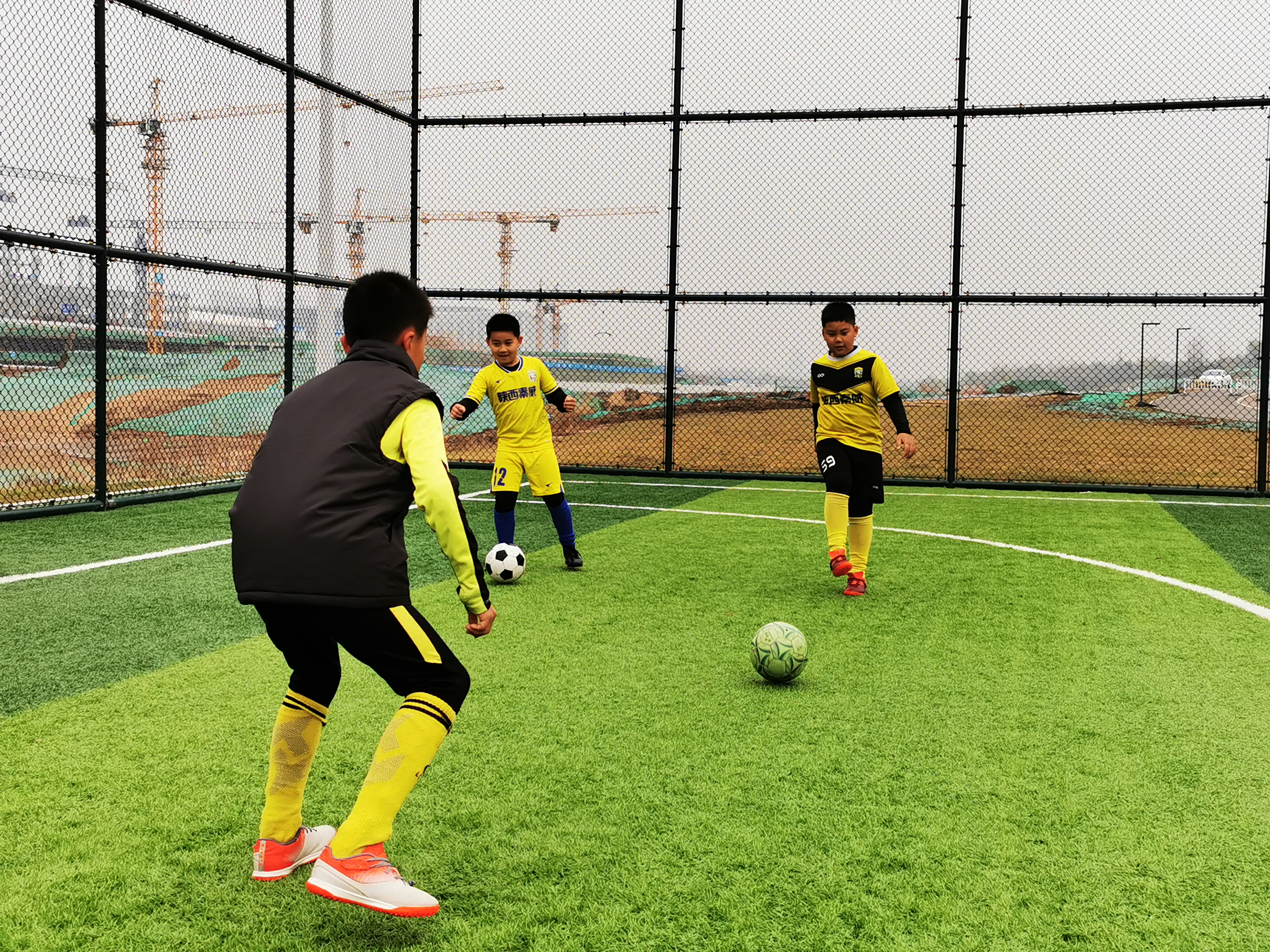 足球爱好者在西安印象城科维奇足球运动公园踢球