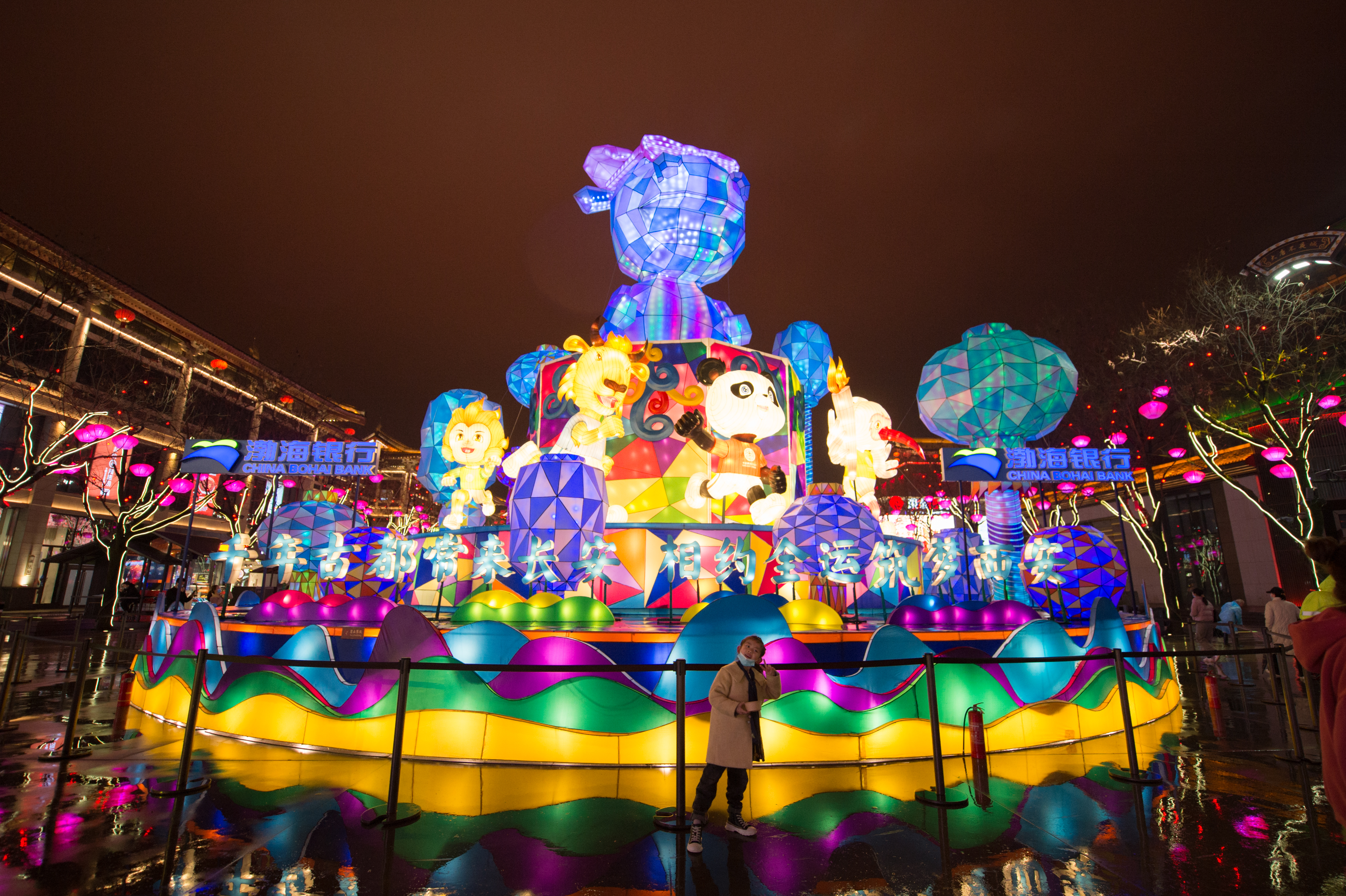 新华社西安2月26日电(记者姚友明)虽然春寒料峭,但低温和阴雨难阻游客热情。在陕西西安著名旅游景点——大唐不夜城内,华灯初上,第十四届全国运动会吉祥物的主题花灯也被点亮。人们争相在花灯前合影留念,面孔上都绽放着温暖的笑容。