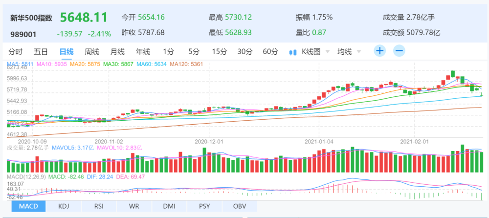 图为新华500指数(989001)日K线图