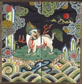 独角兽代表着中国传统的司法精神,成为历代王朝司法公正严明的象征和标识。古代司法官员头上带的官帽“獬豸冠”即是源于独角兽的造型。例如,汉代的廷尉、御吏等都带獬豸冠。清朝时, 监察御使和按察使所穿的补服, 前后皆绣有獬豸图样。