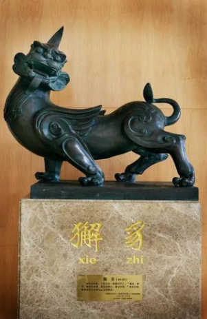 东汉时期的王充在《论衡》中记载了中华司法鼻祖皋陶用獬豸治狱的传说:獬豸“一角之羊也,性知有罪。皋陶治狱,其罪疑者,令羊触之,有罪则触,无罪则不触。”皋陶治狱便是依据獬豸是否顶触来判定是否有罪。