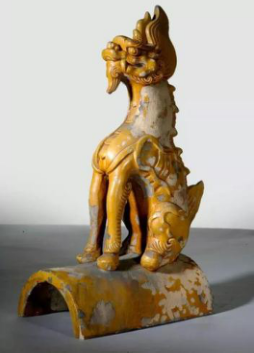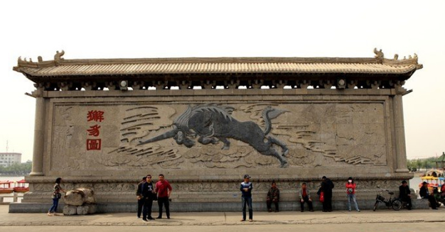 开封府是北宋京都官吏行政、司法的衙署,此为开封府前照壁上的独角兽,锐角前突,弓首翘尾,腾空跃起入云,气势震慑寰宇。