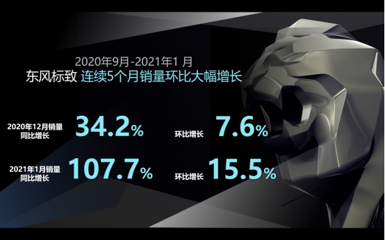 股东持续的大力支持,神龙公司和东风标致对中国市场和客户需求的快速响应和满足,系列积极扎实的行动产生了显著的效果。刚过去的1月份,东风标致实现销量同比增长107.7%,环比增长15.5%的成绩。不仅保持了自去年9月份以来连续五个月的环比正增长;更是保持了去年12月份以来连续同比正增长的势头。