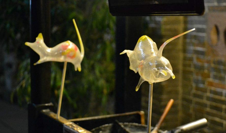 草巷口有个吹糖人的。孙猴子舞大刀、老鼠偷油。