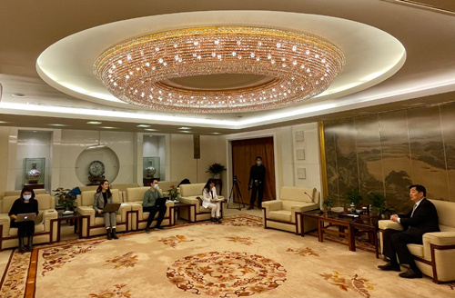2021年2月26日,中国政府中东问题特使翟隽在外交部接受集体采访。