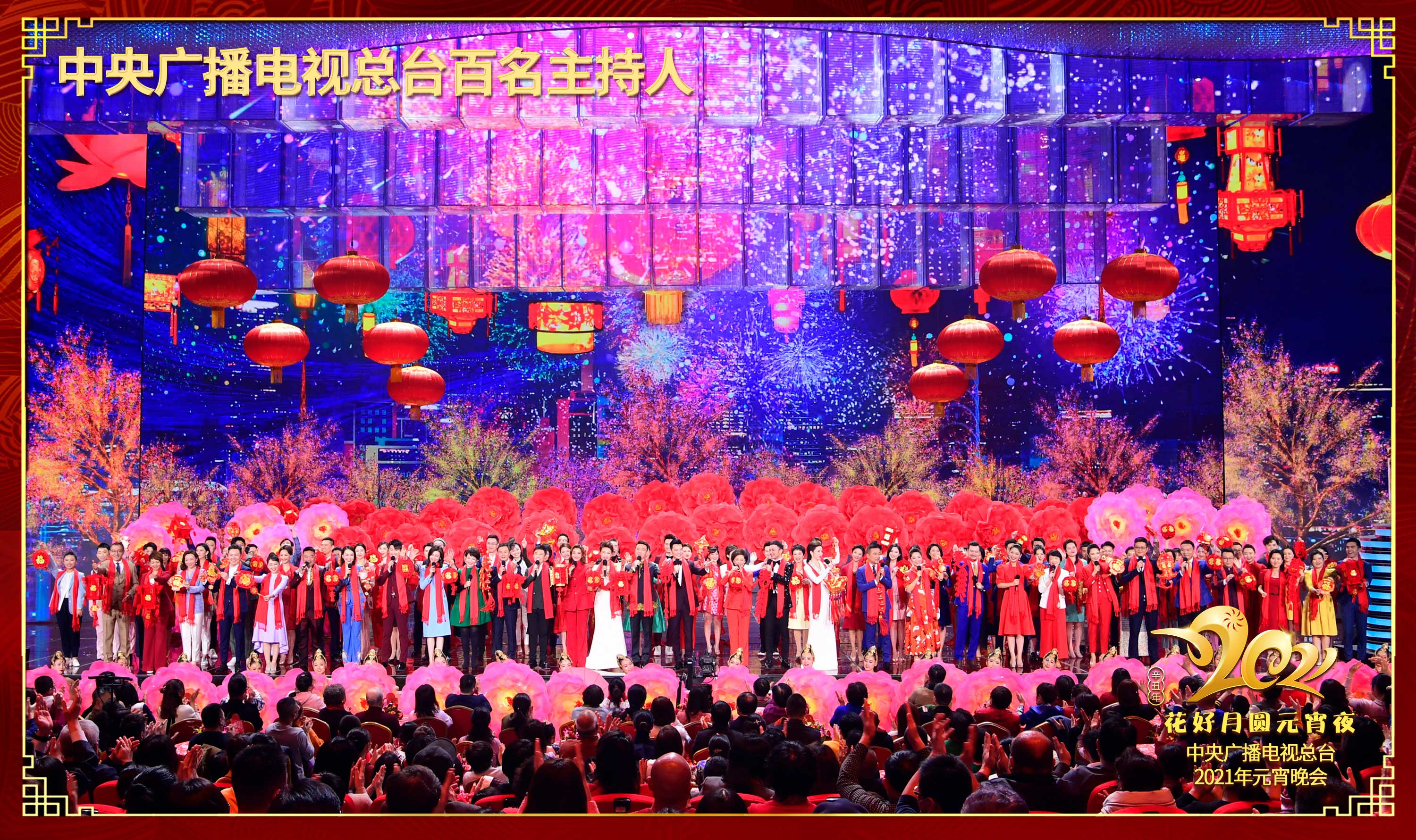 元宵晚会的舞台上,中央广播电视总台百名主持人齐聚。来自各个频道、频率及新媒体平台的他们戴着红围巾唱响《难忘今宵》,手中拿着各式各样的小灯笼、福字、春字、年年有“鱼”等道具,为全国观众送上元宵祝福。网友纷纷表示,“国家队的牌面!”“难得一见!总台范儿就是正!”“都是大家喜欢的主持人,这个节目太棒了!”