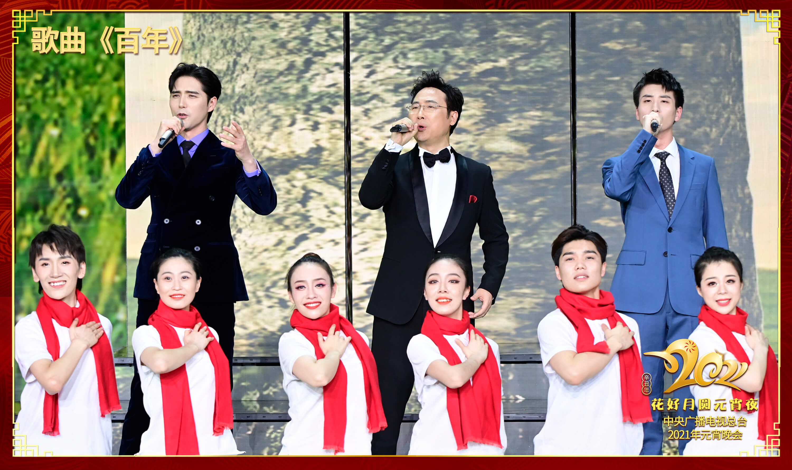 元宵佳节,思念让天涯不再遥远。冰蓝色的舞台上,孙楠与容祖儿(中国香港)两位实力派歌手合唱《陪你共度》,唯美动人。王铮亮、凤凰传奇带来歌曲《家的方向》,温暖的嗓音扣人心弦,祝福所有家庭幸福和美。沙溢跨界抱起吉他,自弹自唱,搭配杜江、汤俊合作歌曲《老了兄弟》,“老了兄弟,一生安好注意身体”情感真挚,引发共鸣。廖昌永、阿云嘎、蔡程昱用穿透力极强的嗓音唱响歌曲《百年》,大气磅礴,传递家国情怀。