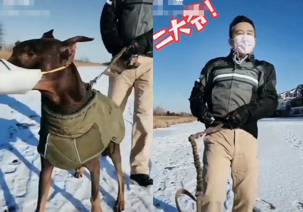 平时喜欢和自家养的狗遛弯,在雪地里玩得不亦乐乎;