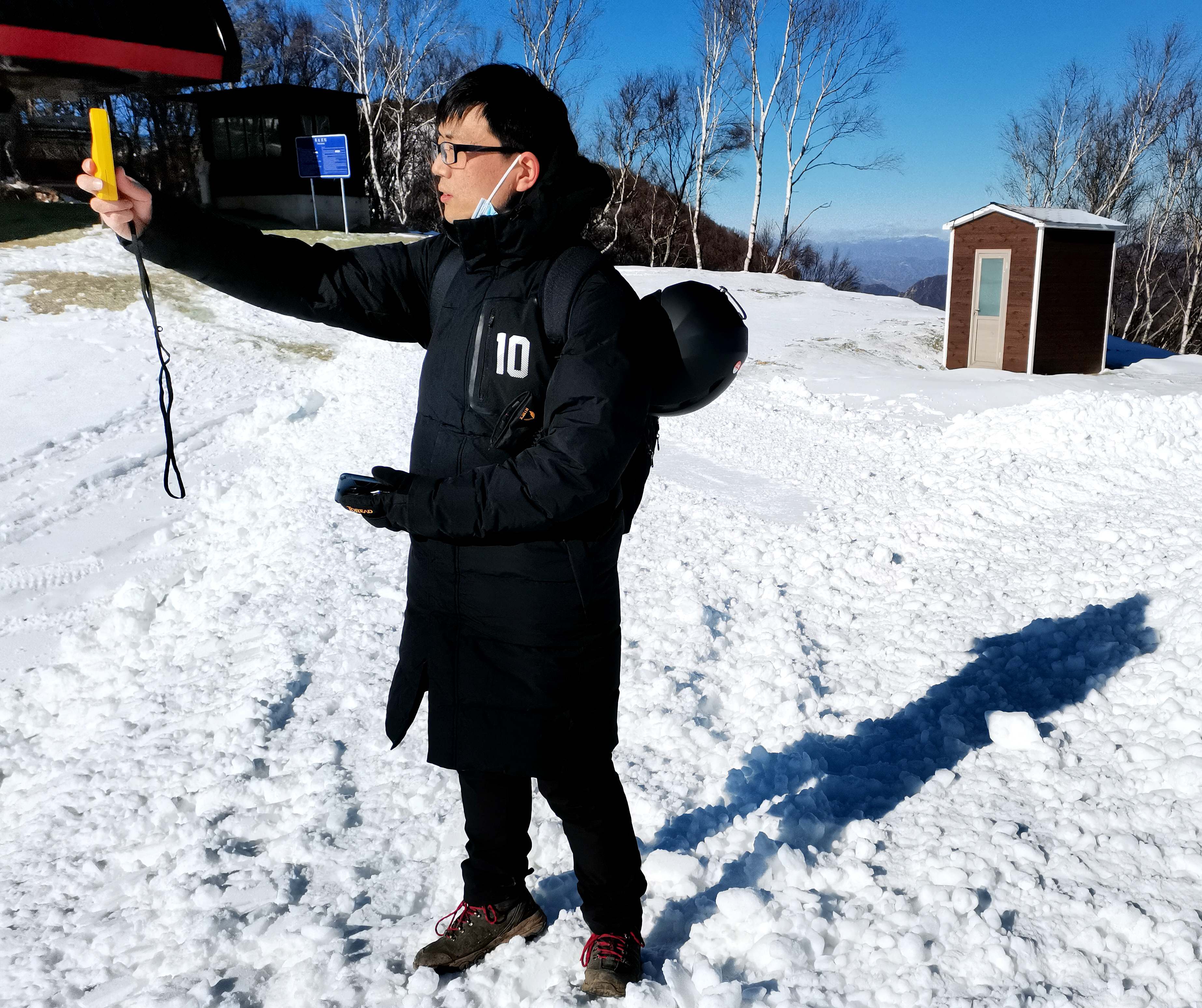 闫宏亮在海陀山实地测量赛区不同点位风向风速