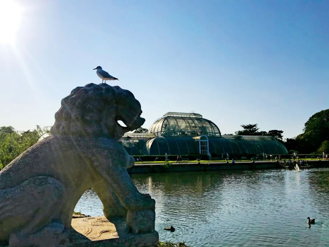 一对中国明代石狮子守在邱园“大棕榈房”外,但石狮子来历不明。