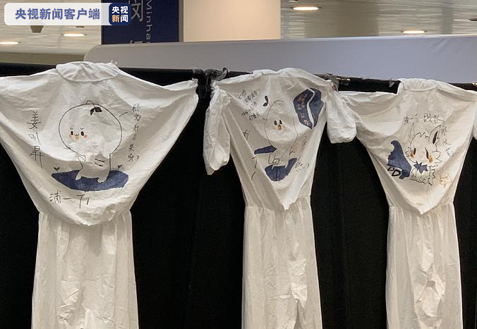 上海市公安局长宁分局出入境管理办公室的民警王中浩就是这些防护服画布的作者。开始的时候他只是为了哄小旅客,后来慢慢发现一个充满童趣和美好的环境,可以让旅客的情绪得到安抚。于是他利用休息时间,用漫画装点了整个防疫隔离区域和各位大白的防护服。