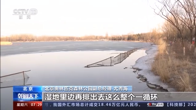 北京奥林匹克森林公园副总经理 尤秀海:整个奥森公园现在用的水都是清河污水处理厂处理的中水,进入咱们的主湖,然后再抽到这个湿地里边,形成循环,每天是2万方水循环。