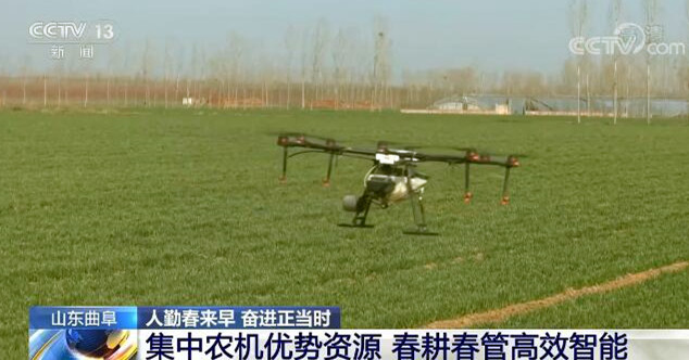 在今年春季农业生产中,山东曲阜市组织成立“农机合作社联盟”,集中农机优势资源,让春耕春管更高效、更智能。施肥、起垄、播种、铺农膜,“合作社联盟”推出的一条龙托管服务让农户省时省力又省心。在尼山镇南辛村,农机手正指挥植保机对麦田喷洒农药,由于农机上安装了智能黑匣子,能实时传输作业面积、喷洒效果等数据信息,有效提高了农业生产效率。