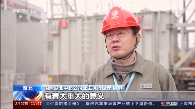 国网湖北中超公司业主执行经理 周琪:整体的工期大概能缩短一个月以上,加快实现能源绿色转型,这对我们特高压工程的建设如期实现目标,有着太重大的意义。