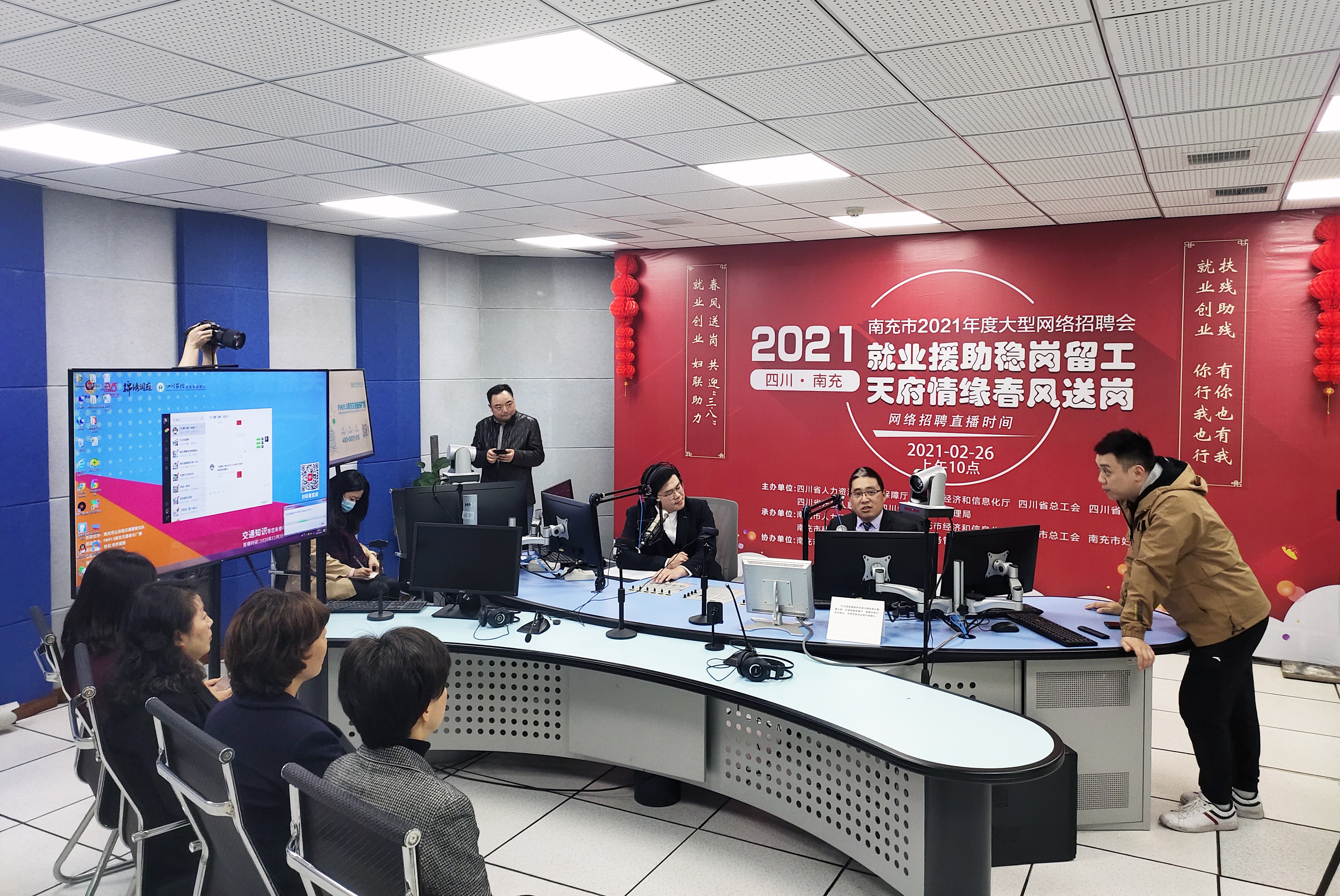 图为2月26日四川省南充市“直播带岗”现场。(南充市人社局供图)