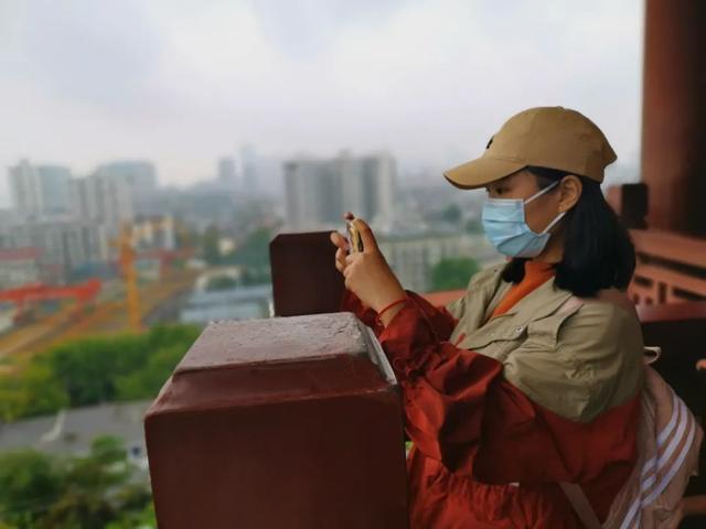 △援鄂医护徐青青登上黄鹤楼,拍照留念