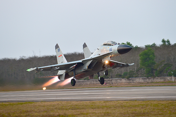 战机依次起飞,奔赴训练空域。高宏伟 摄