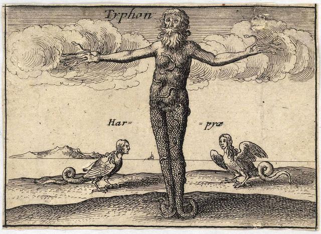 不仅如此,提丰的子女也都是古希腊神话中的怪物,如地狱恶犬刻耳柏洛斯、九头蛇海德拉、鹰身女妖哈耳庇厄、啄食普罗米修斯的秃鹫半狮半鹫怪格里芬,以及狮身人面的斯芬克斯。