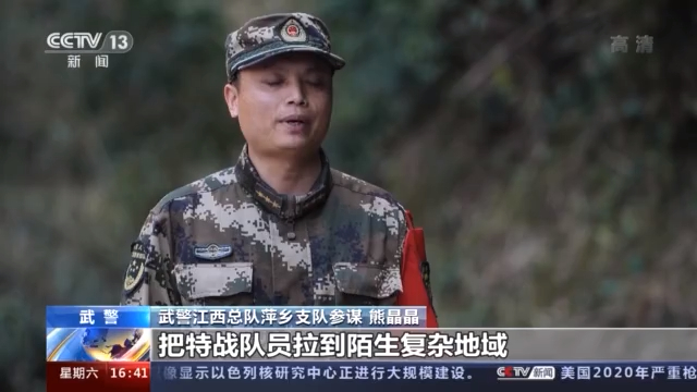 武警江西总队萍乡支队参谋 熊晶晶:我们结合江西山高林密水系多等特点,把特战队员拉到陌生复杂地域,采取随机导调的形式构设典型实战场景,让特战队员在高难度、大强度、多课目连贯作业中提升反恐作战能力。