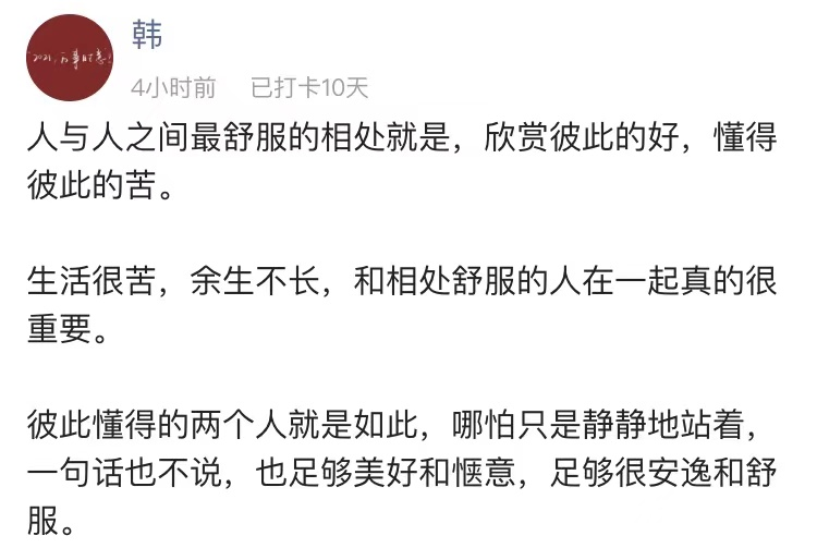 言偃:作家苏芩说过:“跟谁在一起舒服就和谁在一起,包括朋友也是,累了就躲远一点。能入我心者,我待以君王,不入我心者,不屑敷衍。”久处不厌,才是关系长久稳定的关键。