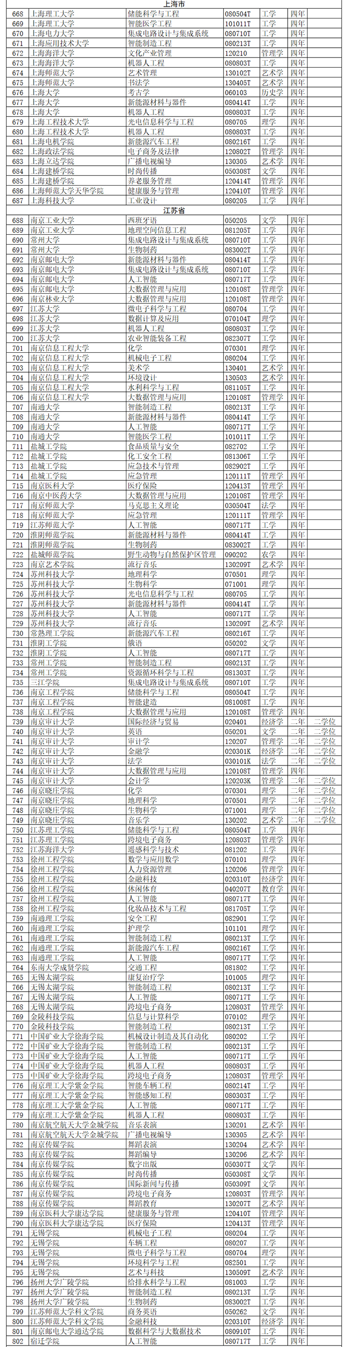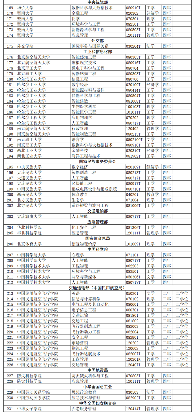 教育部介绍,根据《普通高等学校本科专业设置管理规定》(教高〔2012〕9号),该部组织开展了2020年度普通高等学校本科专业设置和调整工作。经申报、公示、审核等程序,对各地各高校向教育部申请备案的专业予以备案;在以上工作基础上,根据高等学校专业设置与教学指导委员会评议结果,确定了同意设置的国家控制布点专业和尚未列入专业目录的新专业名单。