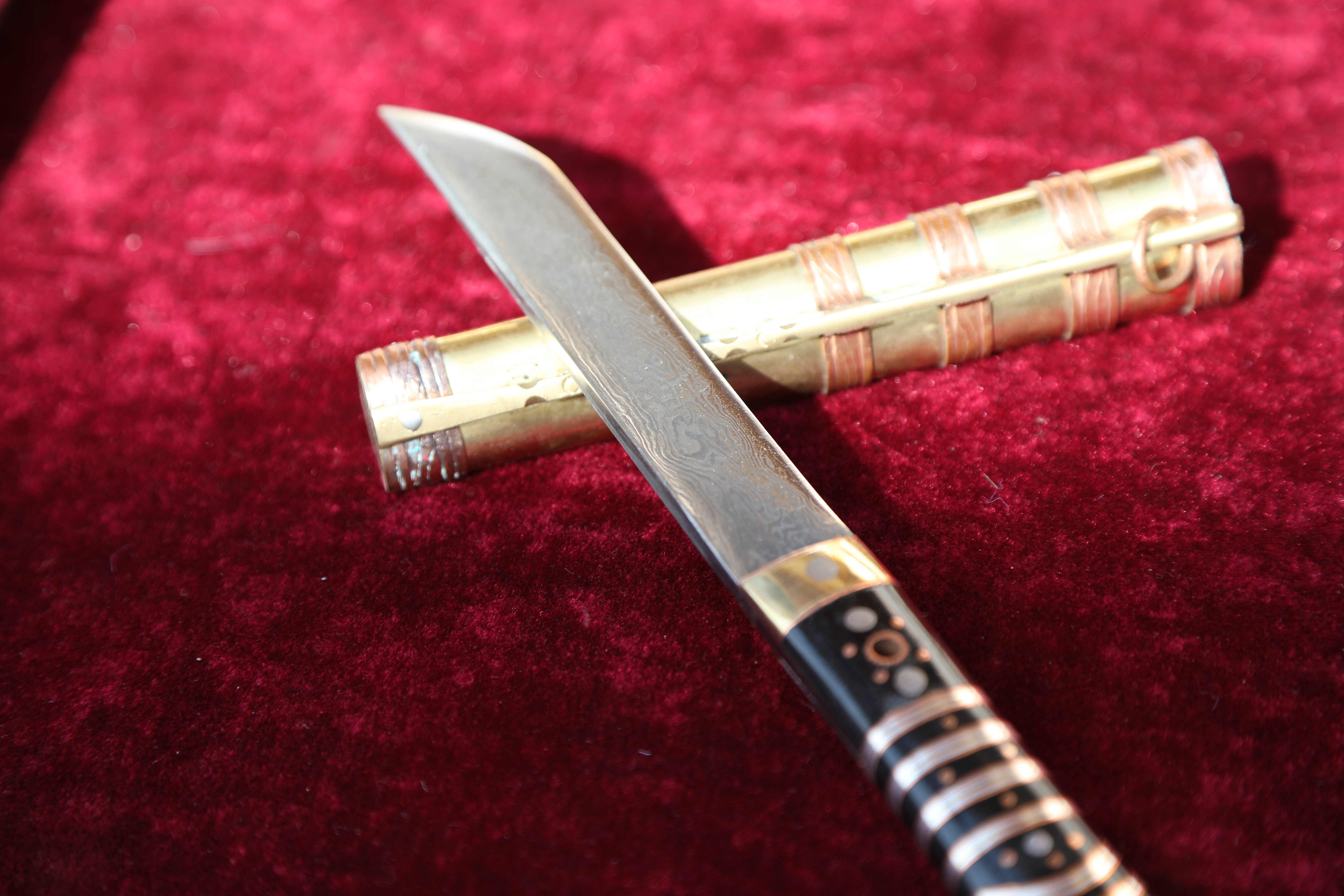 近些年,他将传统的铜质刀鞘改进为优质木材刀鞘,以避免其表面生锈问题,增强腰刀作为工艺品的观赏性,更是与父亲大费周章地复原了濒临失传的黄河流水纹工艺。