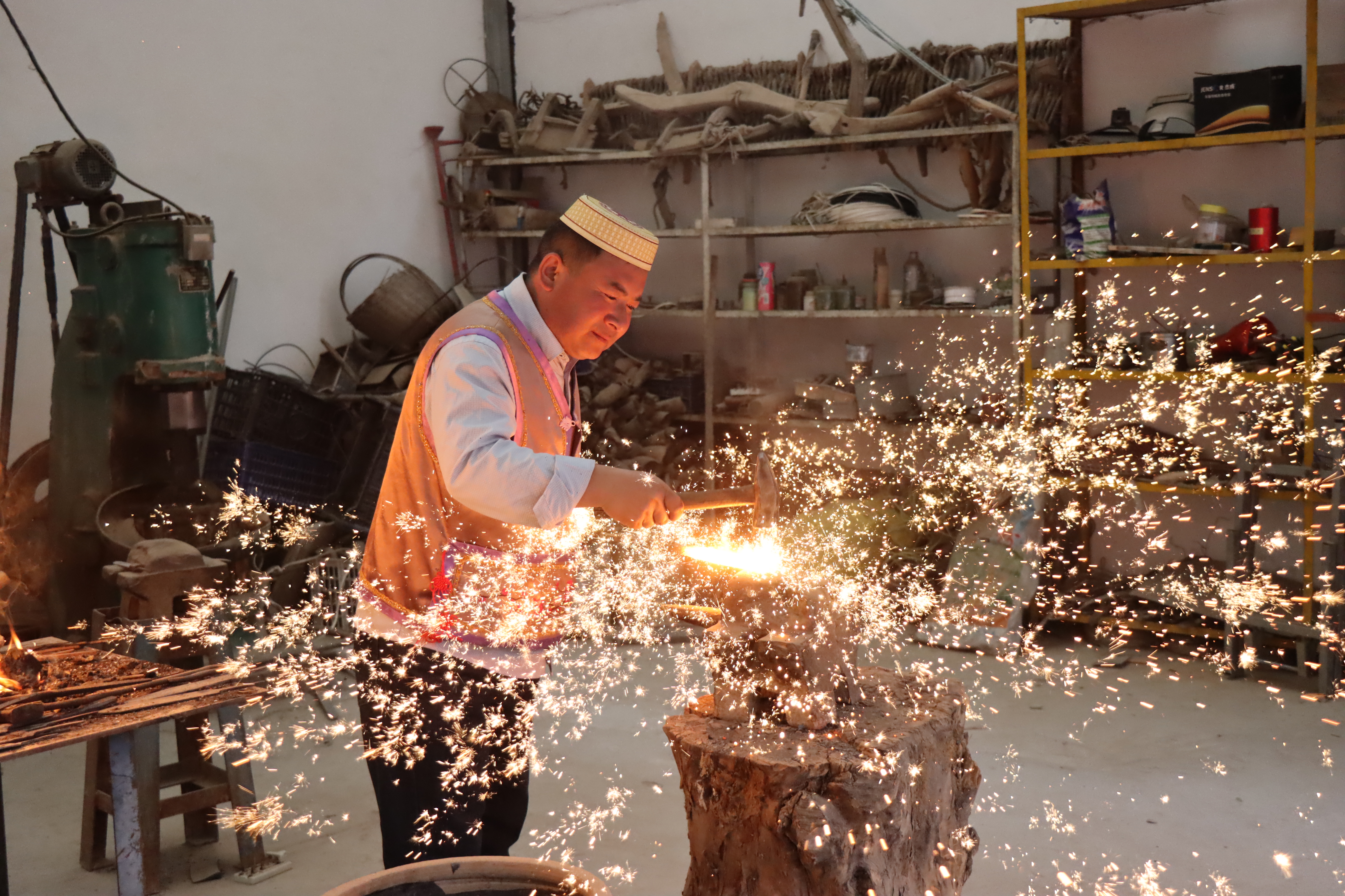马尕主麻正在打制保安腰刀。(积石山县委宣传部供图)