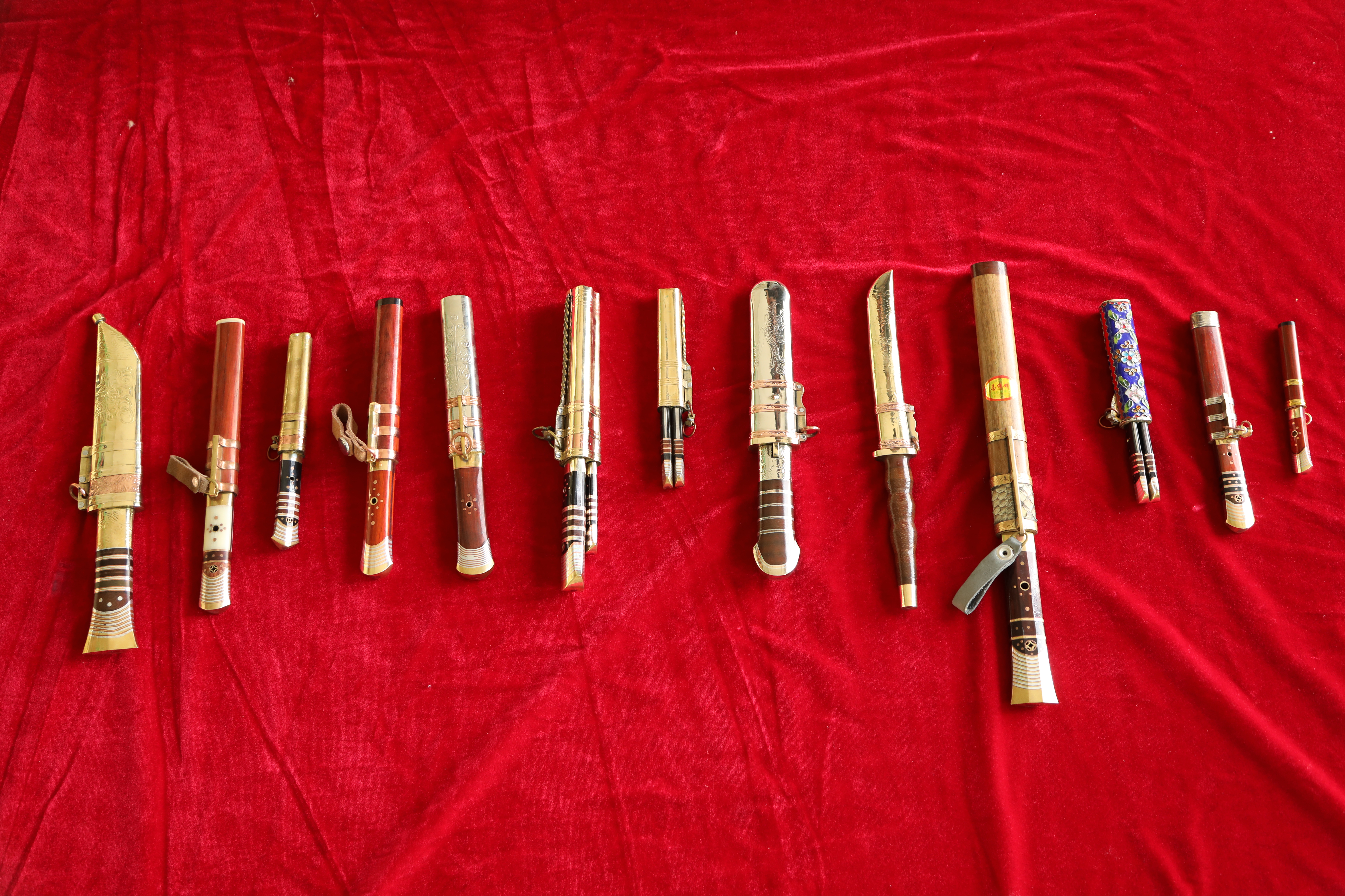 这是不同种类的保安腰刀。(新华社记者马莎摄)