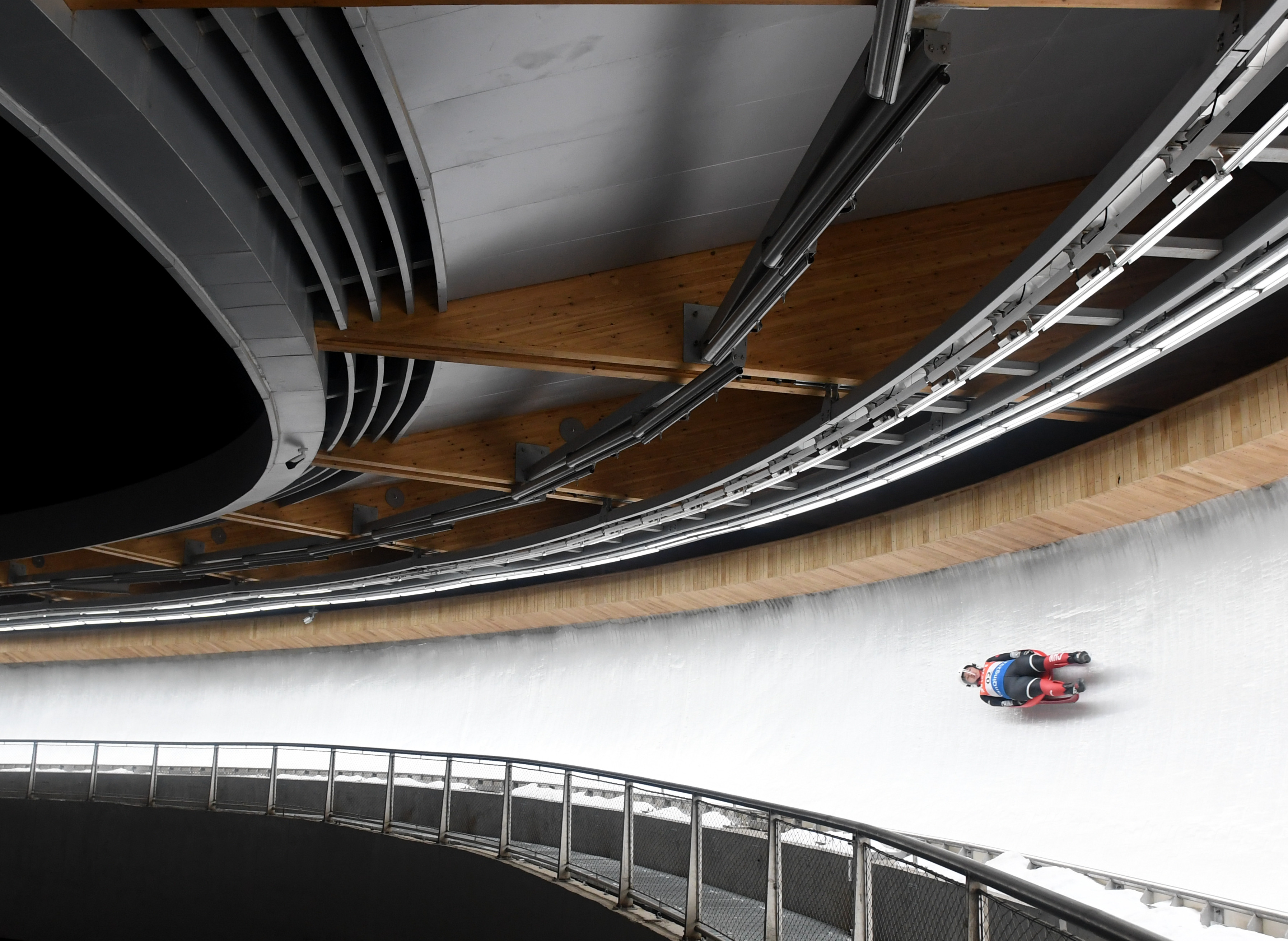 2月20日,北京冬奥会和冬残奥会举行测试活动,图为运动员在延庆赛区国家雪车雪橇中心。新华社记者张晨霖摄