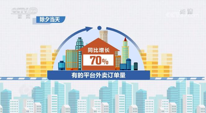 今年春节,线下堂食欣欣向荣,线上外卖更加火爆,不少人都通过外卖来找寻找年味儿。根据商务部统计数据,大型支付机构监测餐饮商户销售额同比增长约1.3倍,部分外卖平台线上餐饮消费额增长2倍以上。除夕当天,有的平台外卖订单量同比增长70%。