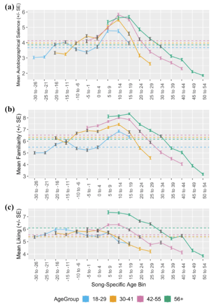 所有年龄段的人,他们14岁左右的歌曲,都唤起了自己最多的记忆(歌曲与自传体记忆的联系最紧密);