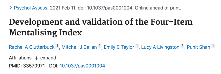 R. A. Clutterbuck et al., Development and validation of the Four-Item Mentalising Index, Psychological Assessment, 2021, DOI: 10.1037/pas0001004