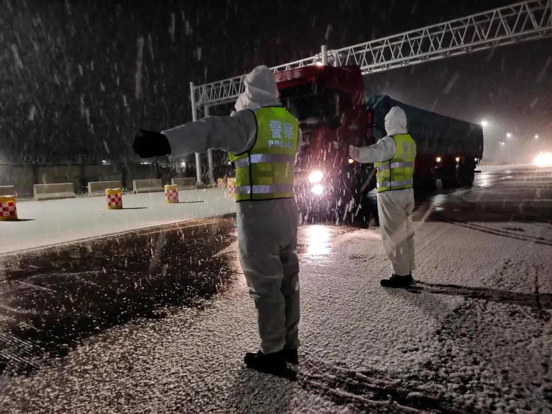 △小草湖公安检查站的民警们冒雪执勤