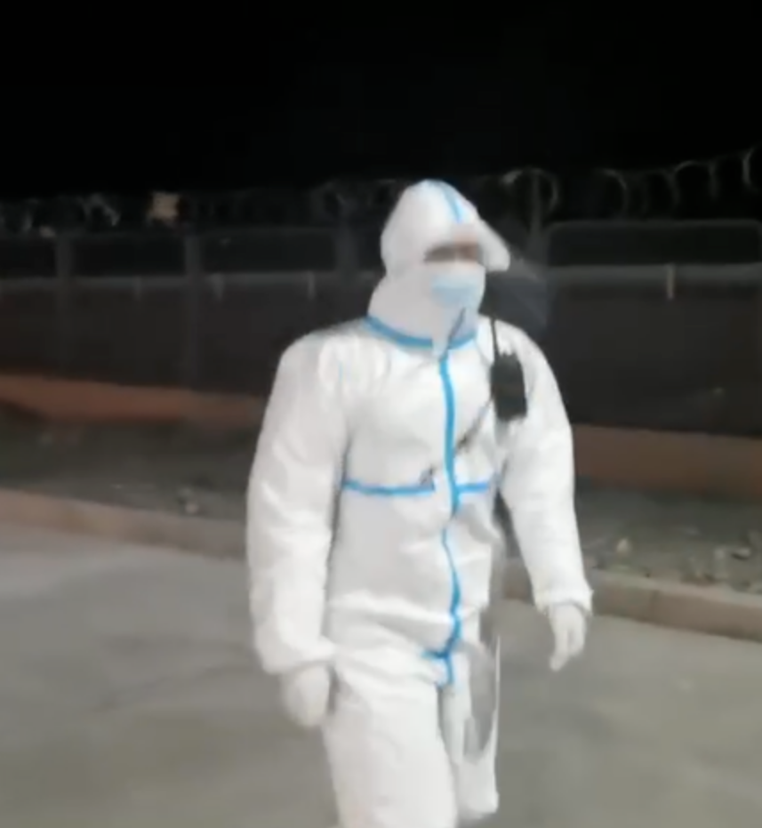 视频中,身穿防护服的马斌