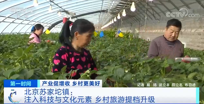 在北京海淀区苏家坨镇柳林村的这家休闲农庄,周末迎来了草莓采摘的高峰期。记者走进温室大棚看到,颗粒饱满的草莓挂在半空中的栽培架上,果形美干净。负责人介绍,草莓大棚全部实现高架无土栽培,相比传统的地栽,可以有效利用土地和光照,降低病虫害发生,水肥一体化设备可以根据草莓的生长需求进行精准施肥,温控等全程智能自动控制,人工成本缩减,产量却比土壤栽培高近20%。