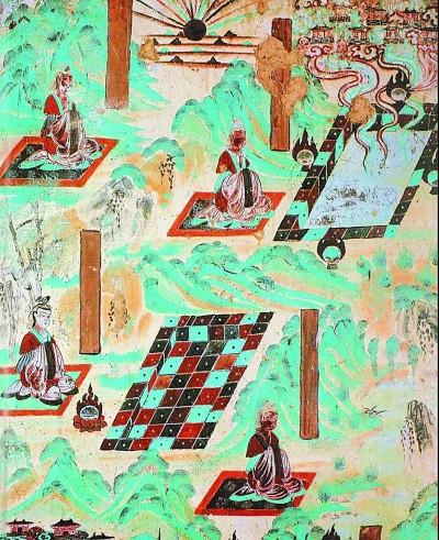 中国画古时又称丹青,所谓丹青主要是指朱砂和石青二色。古时作画,由于色彩种类和绘画技法的限制,朱砂和石青最为常用,所以又用丹青来泛指图画。青、绿二色在汉代之后广泛运用于绘画领域,其中一个最主要的原因就是佛教艺术的传入。从现存魏晋时期的敦煌壁画中,能够看到大量石青、石绿被运用于描绘山石、树木和佛像的服饰之上。顾恺之《洛神赋图》中的山石、树木仍可见敦煌壁画中树石之身影。而在中国的传统绘画中,将青色发展到极致门类则是“青绿山水”,自展子虔创青绿山水样式后,中国画呈现出更为富丽堂皇的局面,因此展子虔又被誉为“唐画之祖”。而习展子虔的李思训和李昭道父子二人,更是将青绿山水推到了盛唐画坛最受欢迎的绘画门类,后人将二人合称为“大小李将军”,并称李思训为山水画“北宗”之祖。在青绿山水画中,王希孟的《千里江山图》可谓家喻户晓,此画卷长近12米,气势辽阔,画中层峦叠嶂、逶迤连绵,又有林木村野、舟船桥梁、亭台楼阁、各种人物布局井然有序,将秀丽山河绘于一卷,所用石青和石绿二色可谓山水的灵气所在。