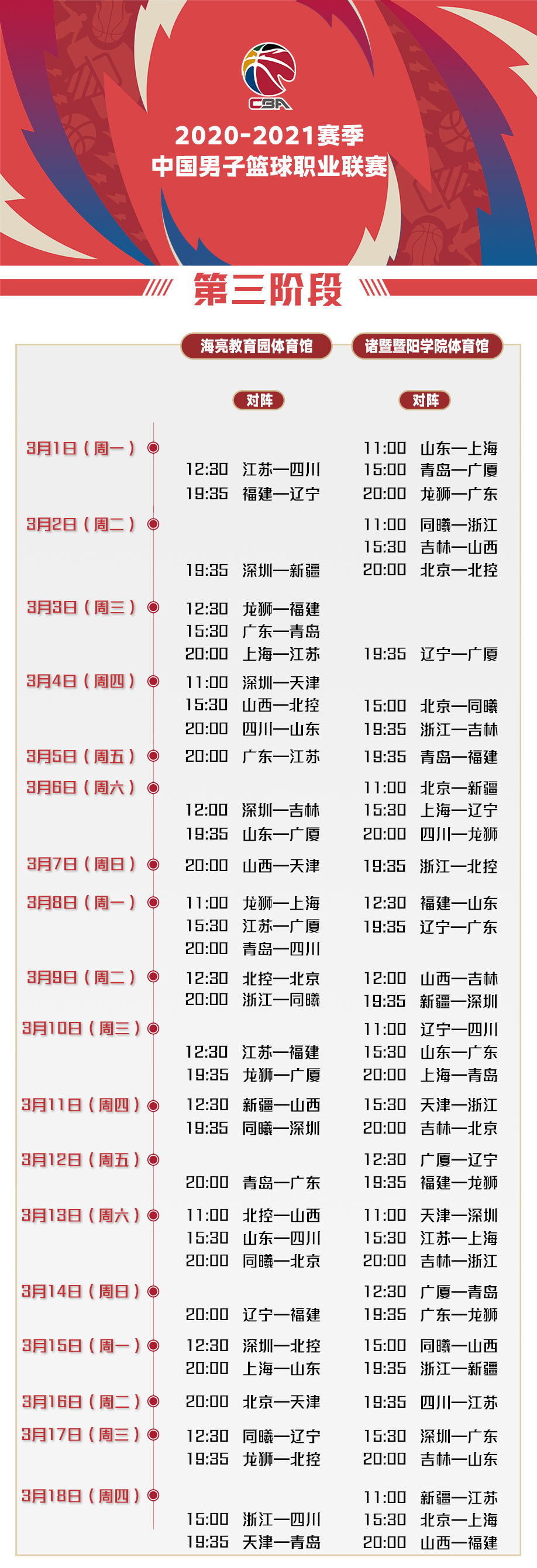 3月1日CBA新阶段比赛将拉开大幕