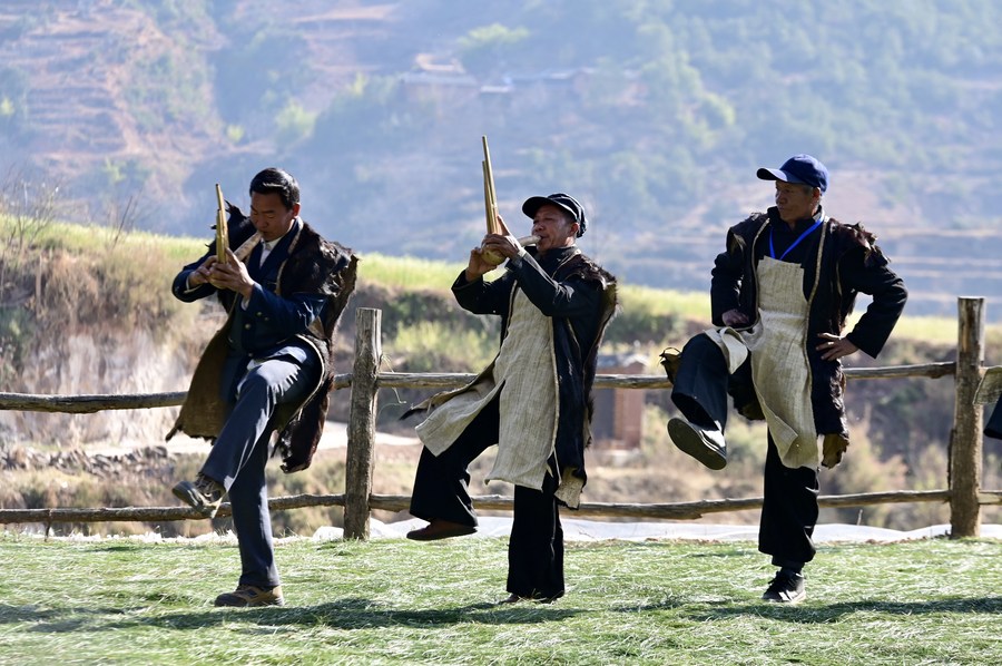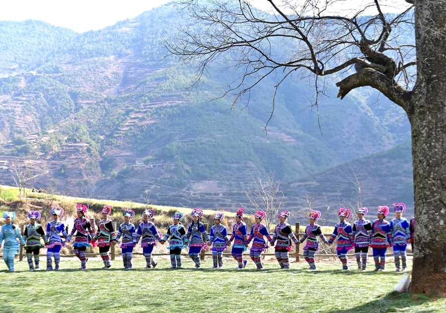 2月26日,彝族姑娘在打跳。新华社发(杨雷 摄)