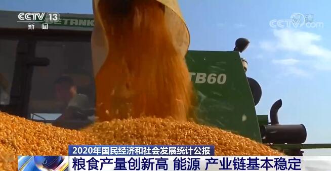 2020年,粮食产量再创新高,连续6年保持在1.3万亿斤以上。能源供应保持稳定,原煤、原油、天然气产量保持增长。产业链供应链基本稳定,全年全国工业产能利用率为74.5%。