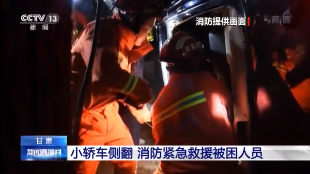 小轿车侧翻 消防紧急救援被困人员