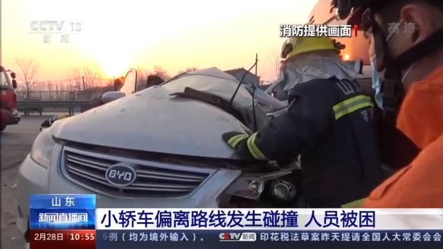 小轿车偏离路线发生碰撞 人员被困