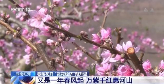 同样,在四川攀枝花市仁和区务本乡,1000余亩樱桃花和2500余亩桃花悄然开放。依托漫山的果花,务本乡大力发展赏花经济。赏花期间,当地农户通过售卖鲜花以及当地特色农产品实现增收。近年来,务本乡还通过举办桃花节等活动,助推赏花经济的发展,让当地村民的腰包逐渐鼓了起来。