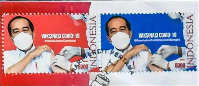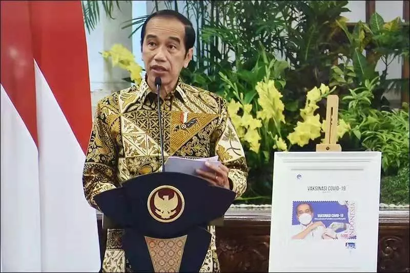 当地时间2月26日,印尼总统佐科出席新冠疫苗接种系列邮票发行仪式。佐科总统接种中国科兴疫苗的画面印在了邮票上,以增强民众对新冠疫苗有效性的信任。