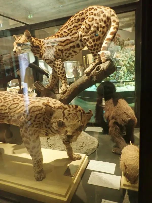 18和19世纪的标本制作师大多没机会见到活的动物,往往只能根据手头的皮张和想象进行“创作”,于是时常会从他们手上诞生出一些直击灵魂的作品。下面的虎猫标本制作于1818年,而上面的那只制作于1934年的就已经相当传神了。